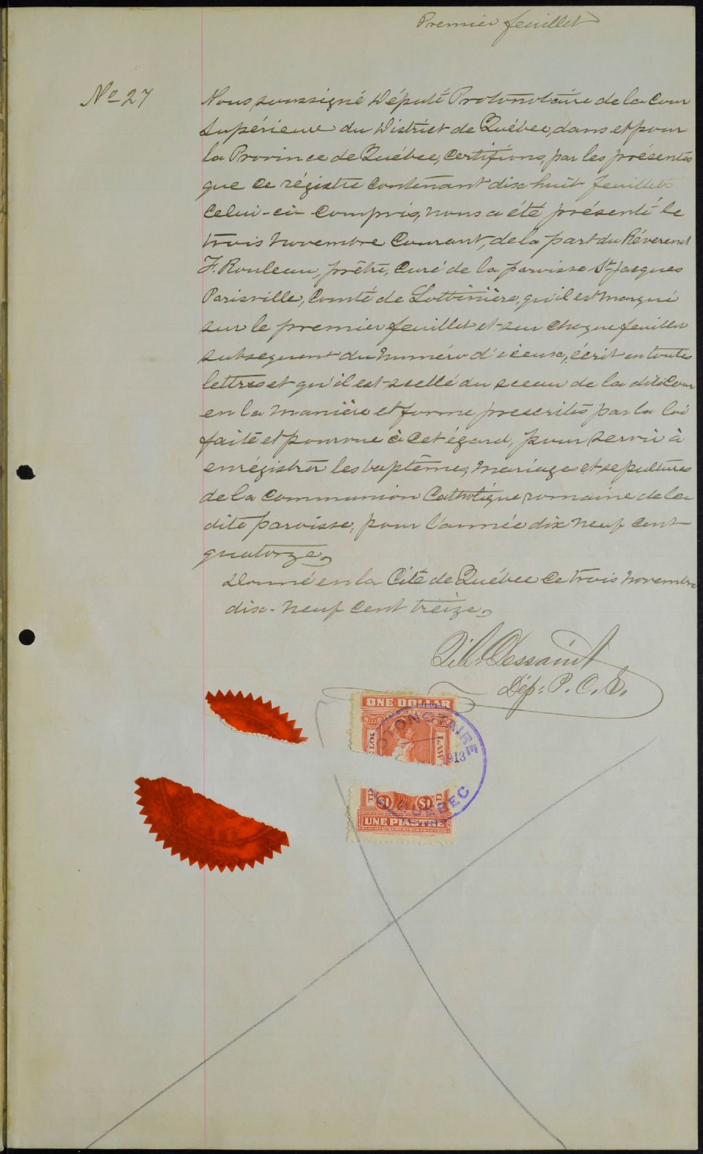 Saint-Jacques-de-Parisville, 1900-1922, Archives nationales à Québec, Fonds Cour supérieure. District judiciaire de Québec. État civil, (03Q,CE301,S111).