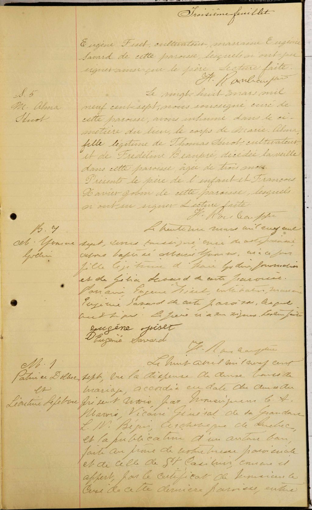 Sainte-Christine, 1895-1922, Archives nationales à Québec, Fonds Cour supérieure. District judiciaire de Québec. État civil, (03Q,CE301,S112).