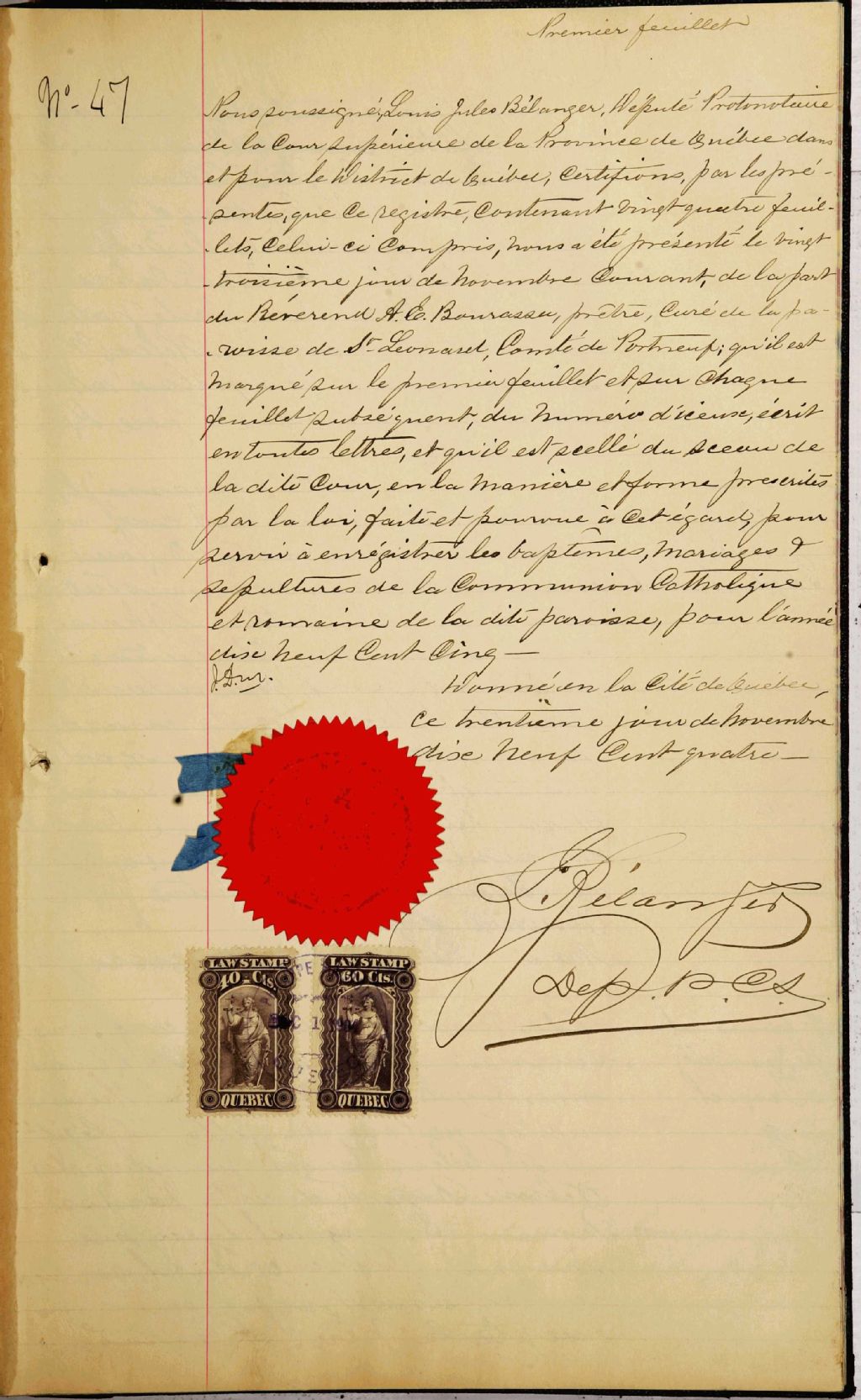 Saint-Léonard-de-Port-Maurice, 1898-1922, Archives nationales à Québec, Fonds Cour supérieure. District judiciaire de Québec. État civil, (03Q,CE301,S115).