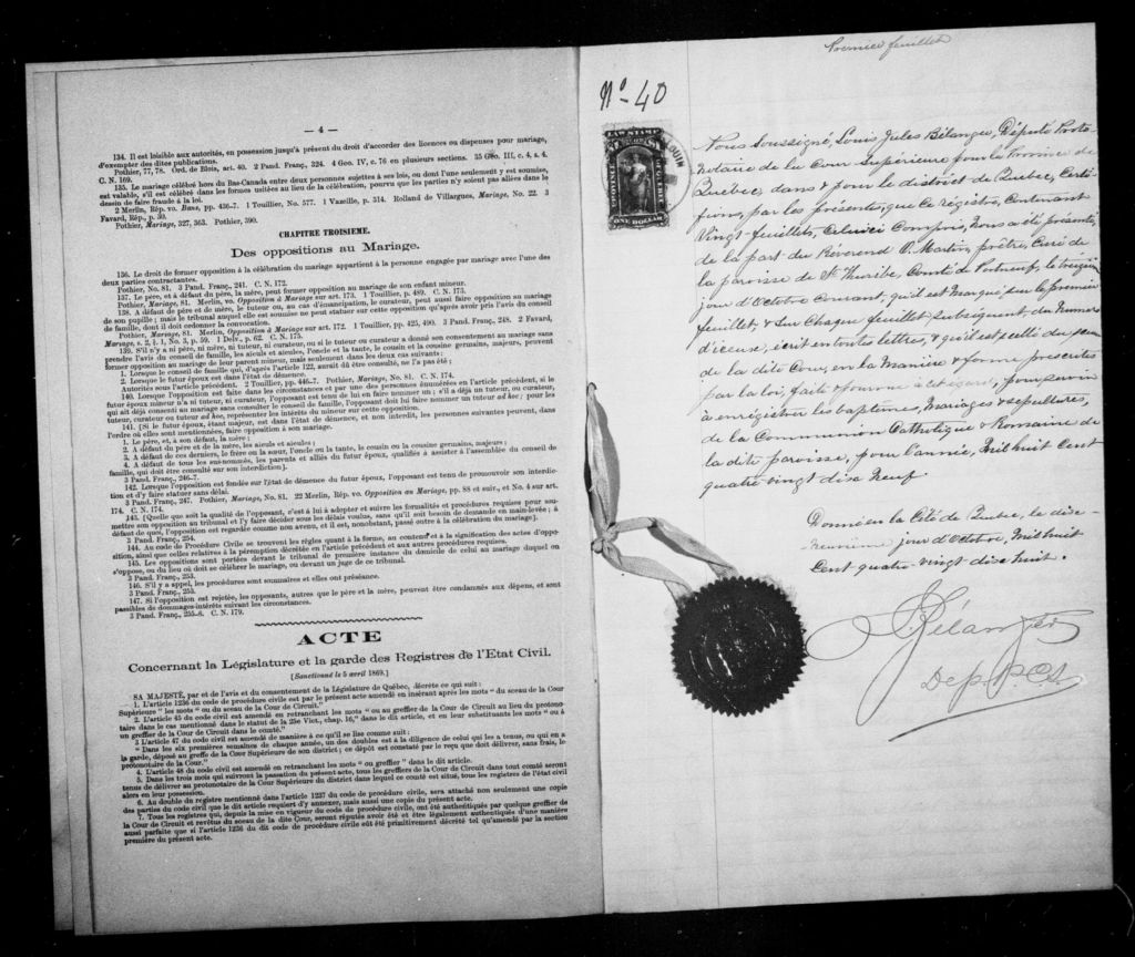 Saint-Thuribe, 1898-1922, Archives nationales à Québec, Fonds Cour supérieure. District judiciaire de Québec. État civil, (03Q,CE301,S116).