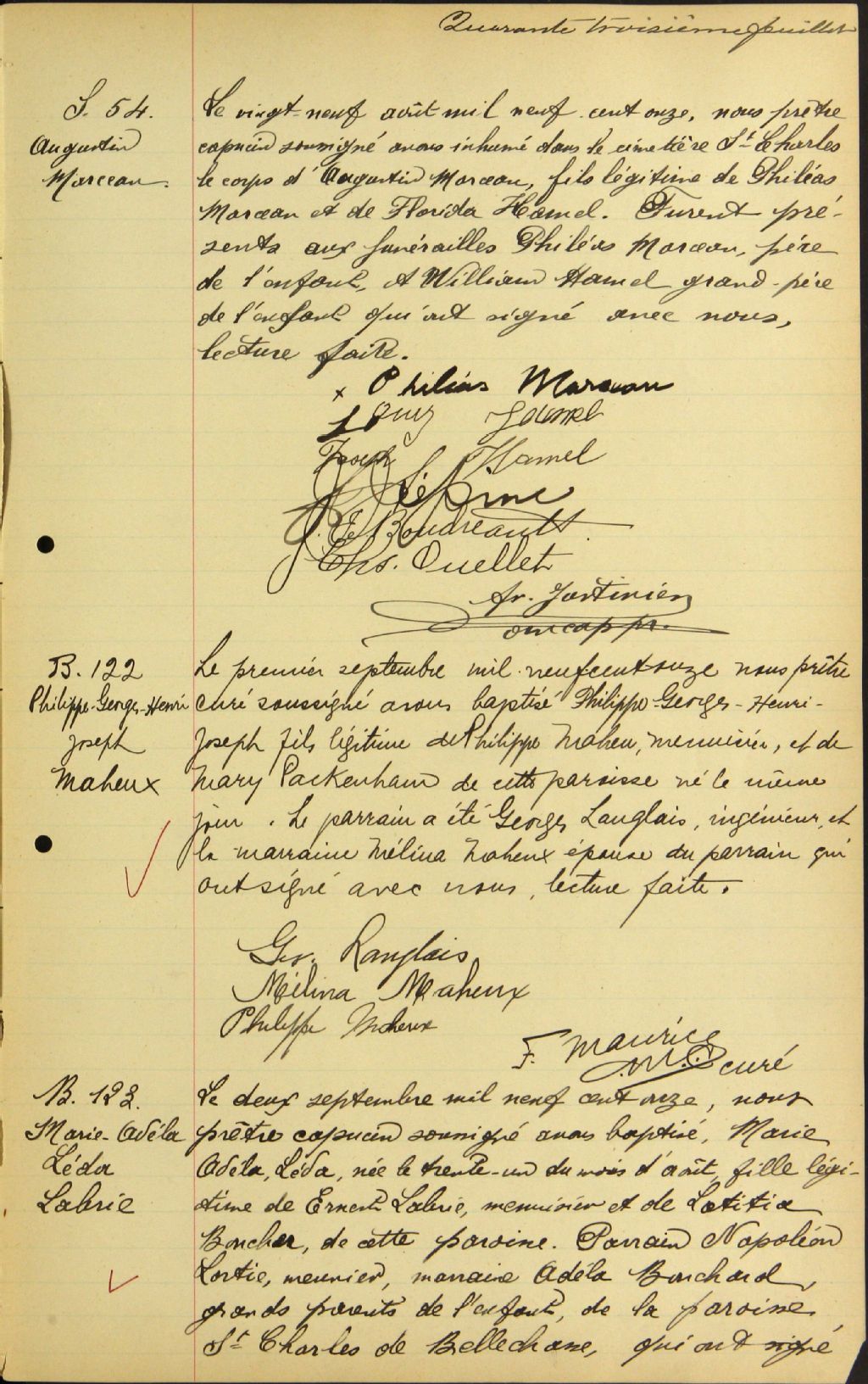 Saint-Charles-de-Limoilou, 1896-1922, Archives nationales à Québec, Fonds Cour supérieure. District judiciaire de Québec. État civil, (03Q,CE301,S117).