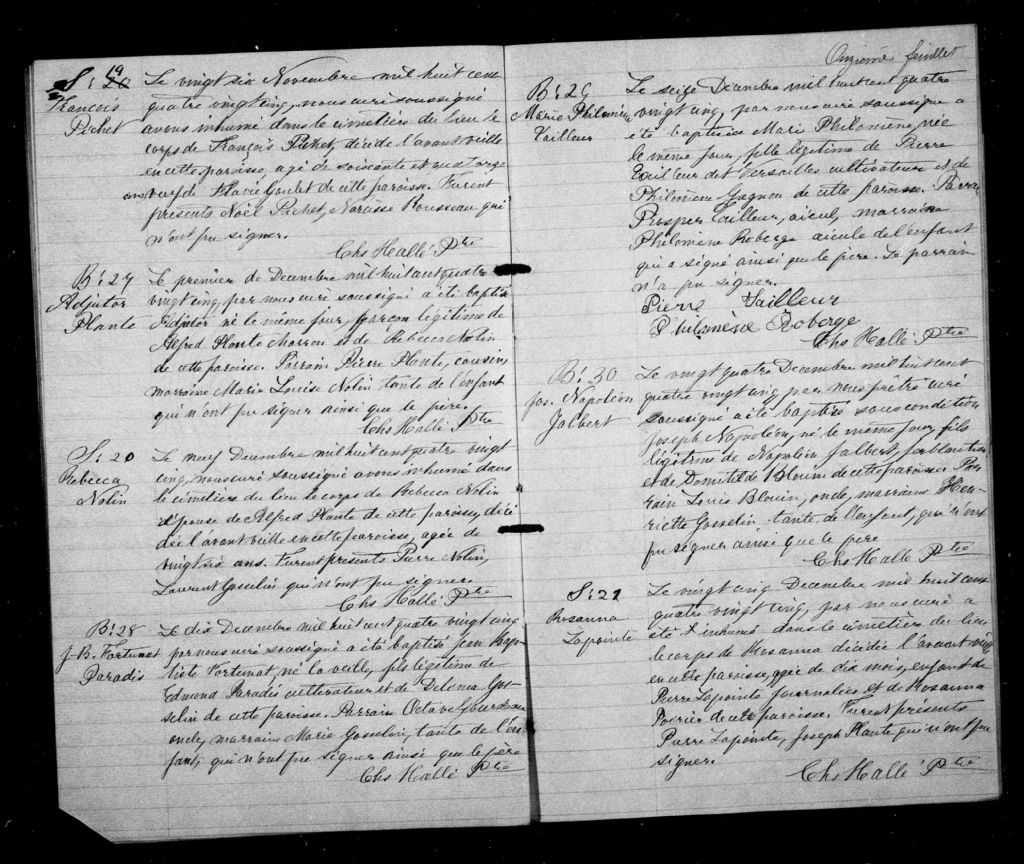 Saint-Pierre-et-Saint-Paul, Île d'Orléans, 1679-1922, Archives nationales à Québec, Fonds Cour supérieure. District judiciaire de Québec. État civil, (03Q,CE301,S12).