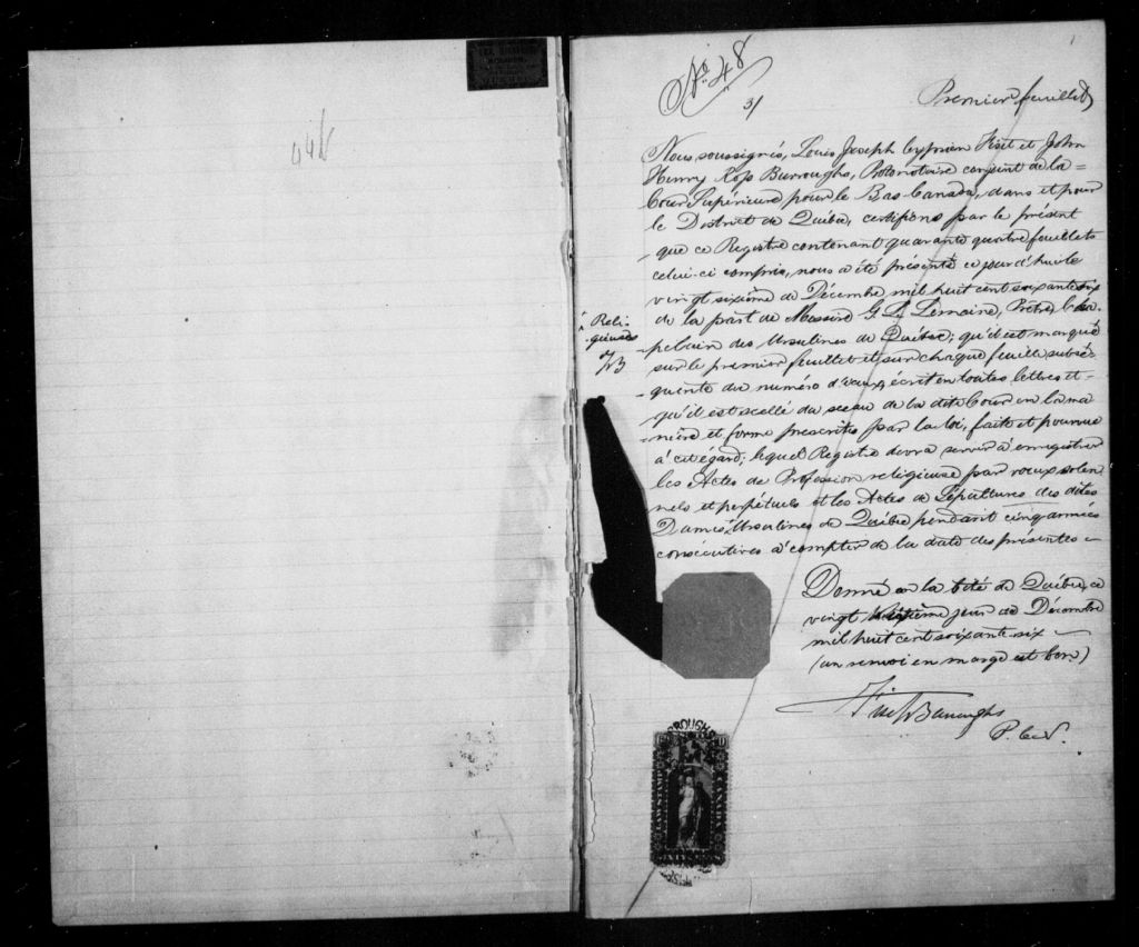 Congrégation des Ursulines, 1866-1922, Archives nationales à Québec, Fonds Cour supérieure. District judiciaire de Québec. État civil, (03Q,CE301,S121).