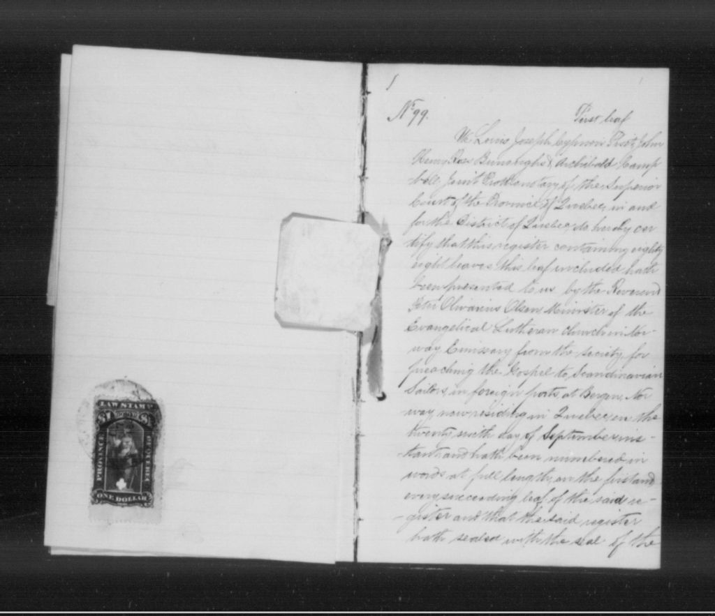 Evangelical Lutheran Church, 1882-1894, Archives nationales à Québec, Fonds Cour supérieure. District judiciaire de Québec. État civil, (03Q,CE301,S124).