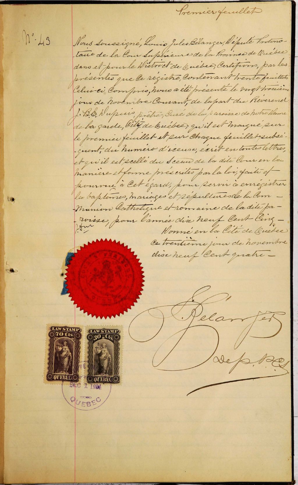 Notre-Dame-de-la-Garde, 1885-1922, Archives nationales à Québec, Fonds Cour supérieure. District judiciaire de Québec. État civil, (03Q,CE301,S126).