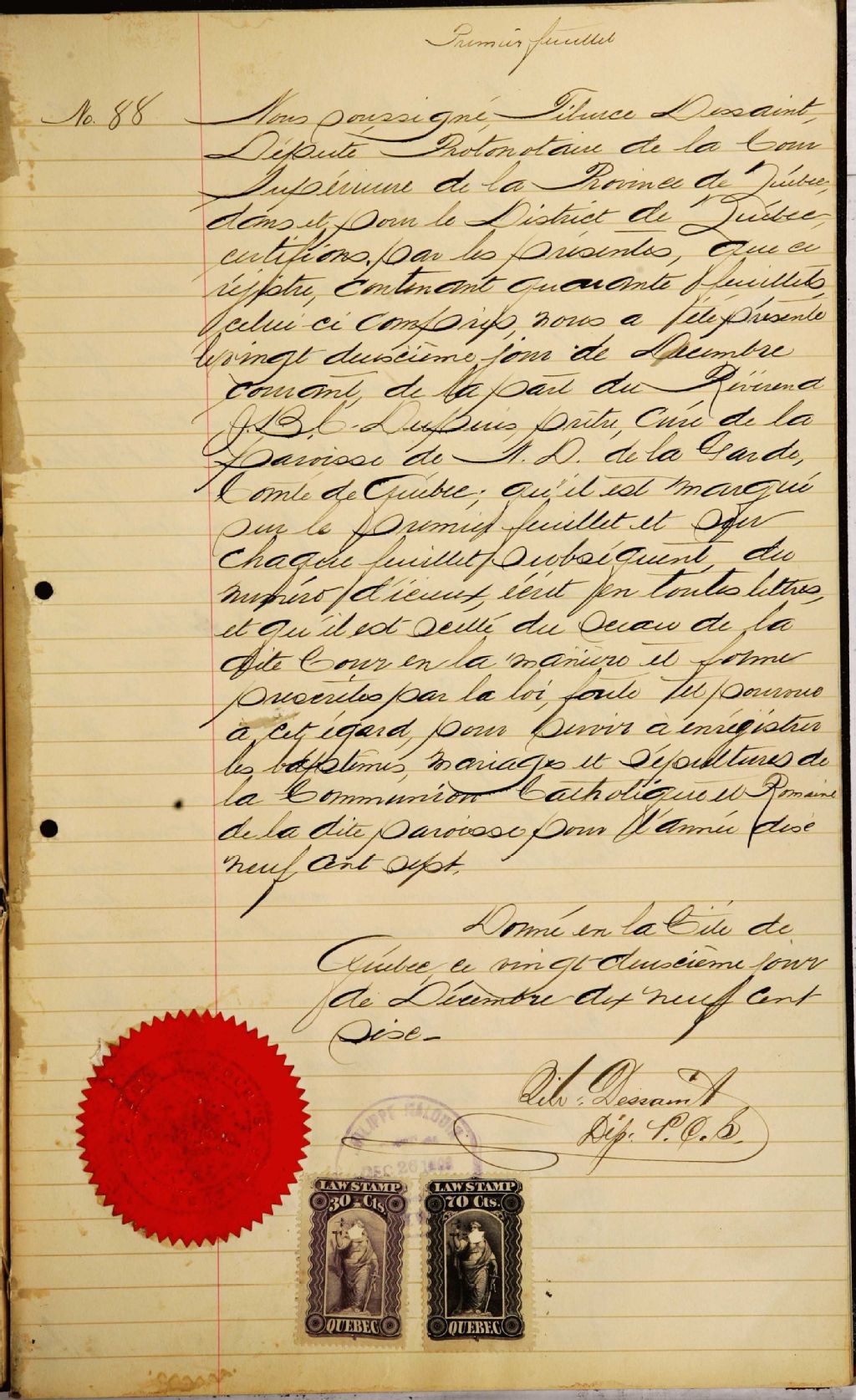 Notre-Dame-de-la-Garde, 1885-1922, Archives nationales à Québec, Fonds Cour supérieure. District judiciaire de Québec. État civil, (03Q,CE301,S126).