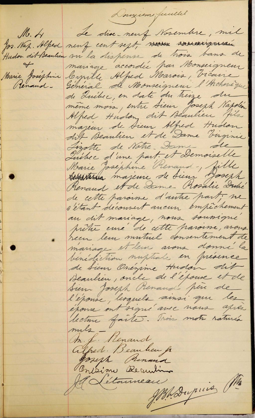Notre-Dame-de-la-Garde, 1885-1922, Archives nationales à Québec, Fonds Cour supérieure. District judiciaire de Québec. État civil, (03Q,CE301,S126).