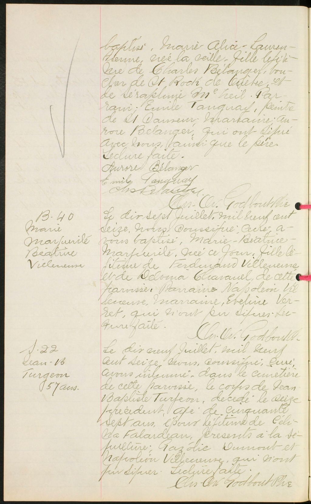Notre-Dame-des-Laurentides, 1905-1922, Archives nationales à Québec, Fonds Cour supérieure. District judiciaire de Québec. État civil, (03Q,CE301,S129).