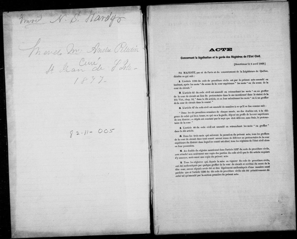 Saint-Jean-Baptiste, Île d'Orléans, 1682-1922, Archives nationales à Québec, Fonds Cour supérieure. District judiciaire de Québec. État civil, (03Q,CE301,S13).