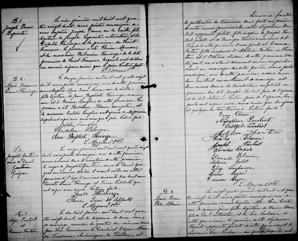 Saint-Jean-Baptiste, Île d'Orléans, 1682-1922, Archives nationales à Québec, Fonds Cour supérieure. District judiciaire de Québec. État civil, (03Q,CE301,S13).