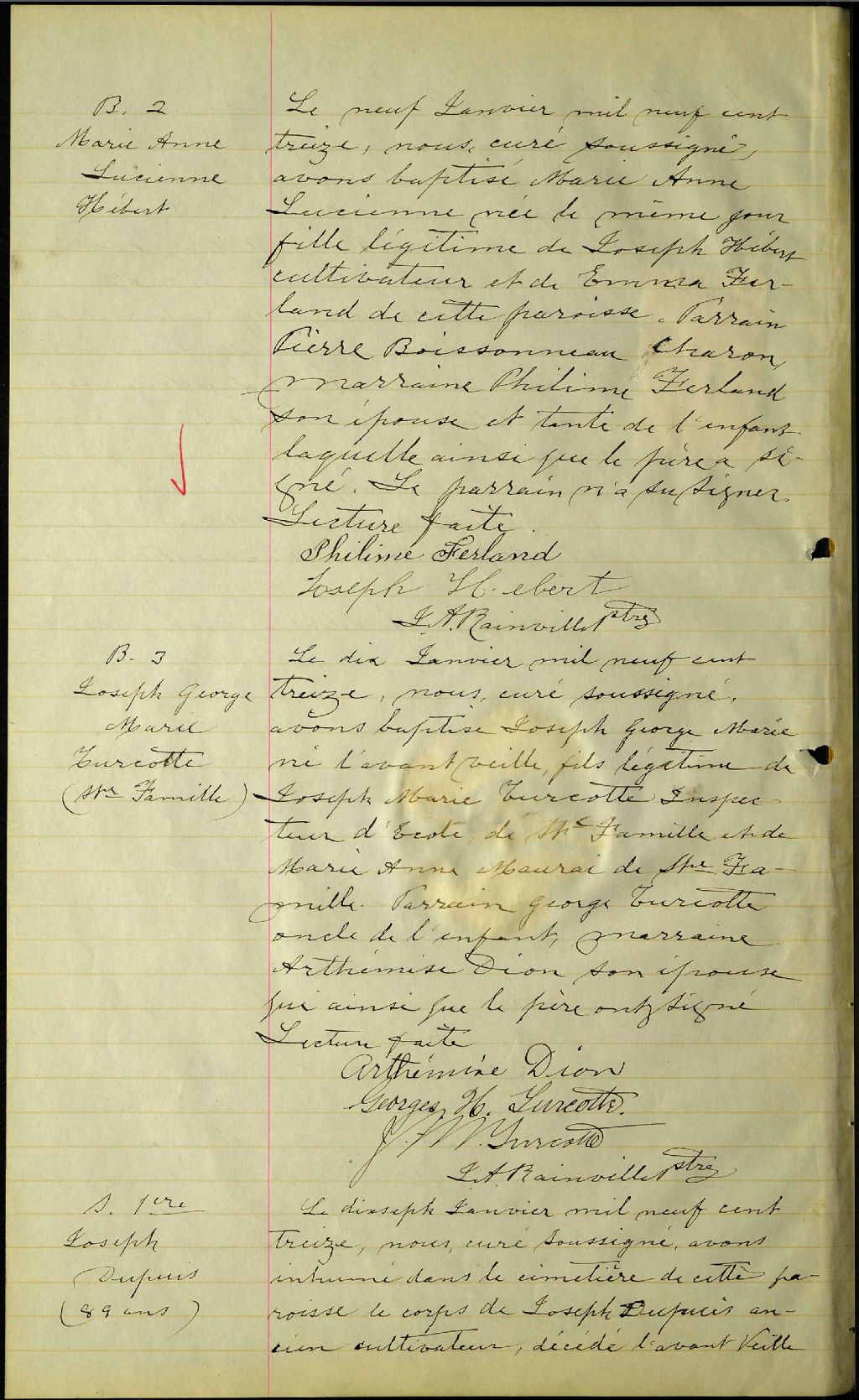 Saint-Jean-Baptiste, Île d'Orléans, 1913, janvier - décembre