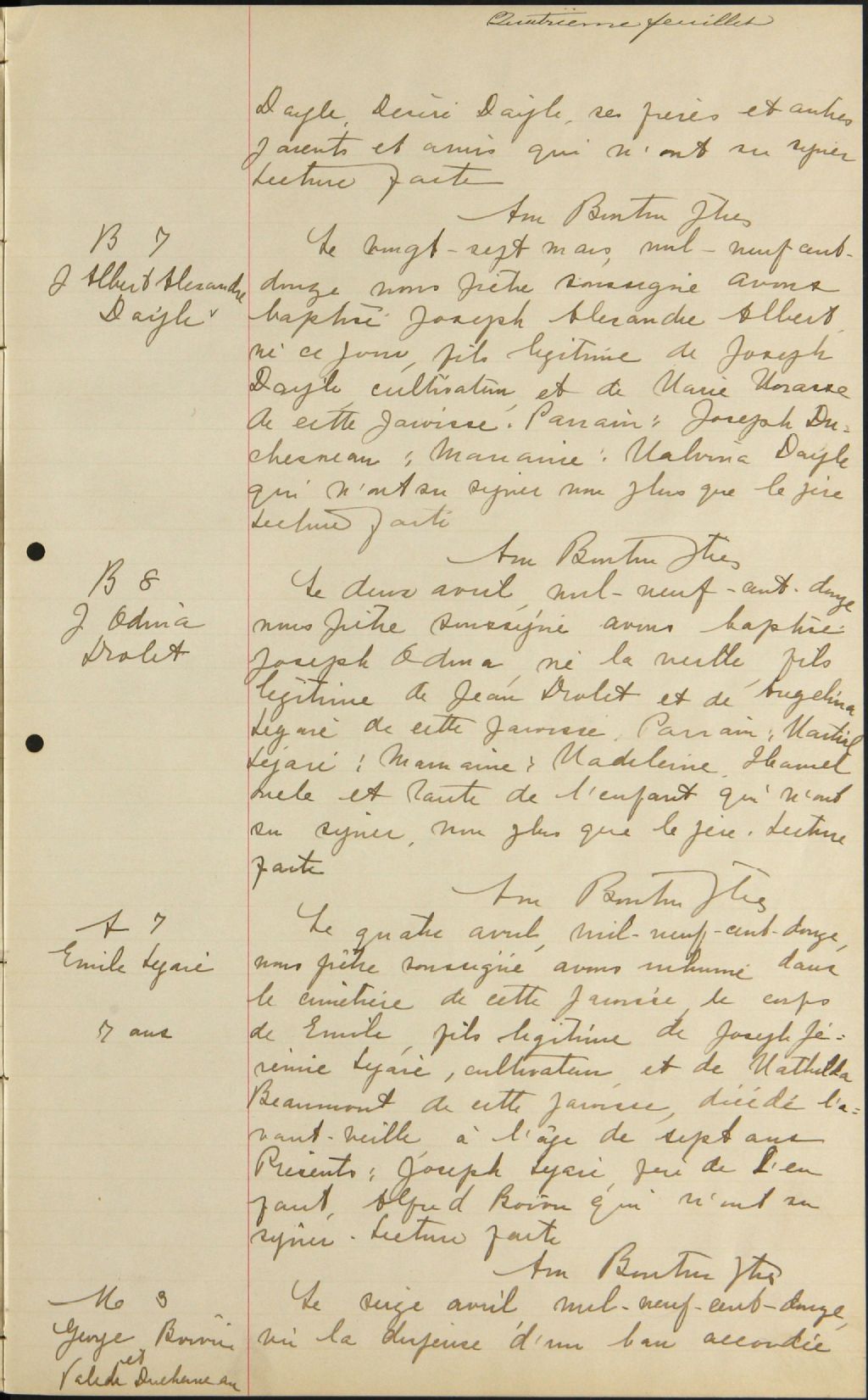 Saint-Gérard-Magella, 1907-1922, Archives nationales à Québec, Fonds Cour supérieure. District judiciaire de Québec. État civil, (03Q,CE301,S130).
