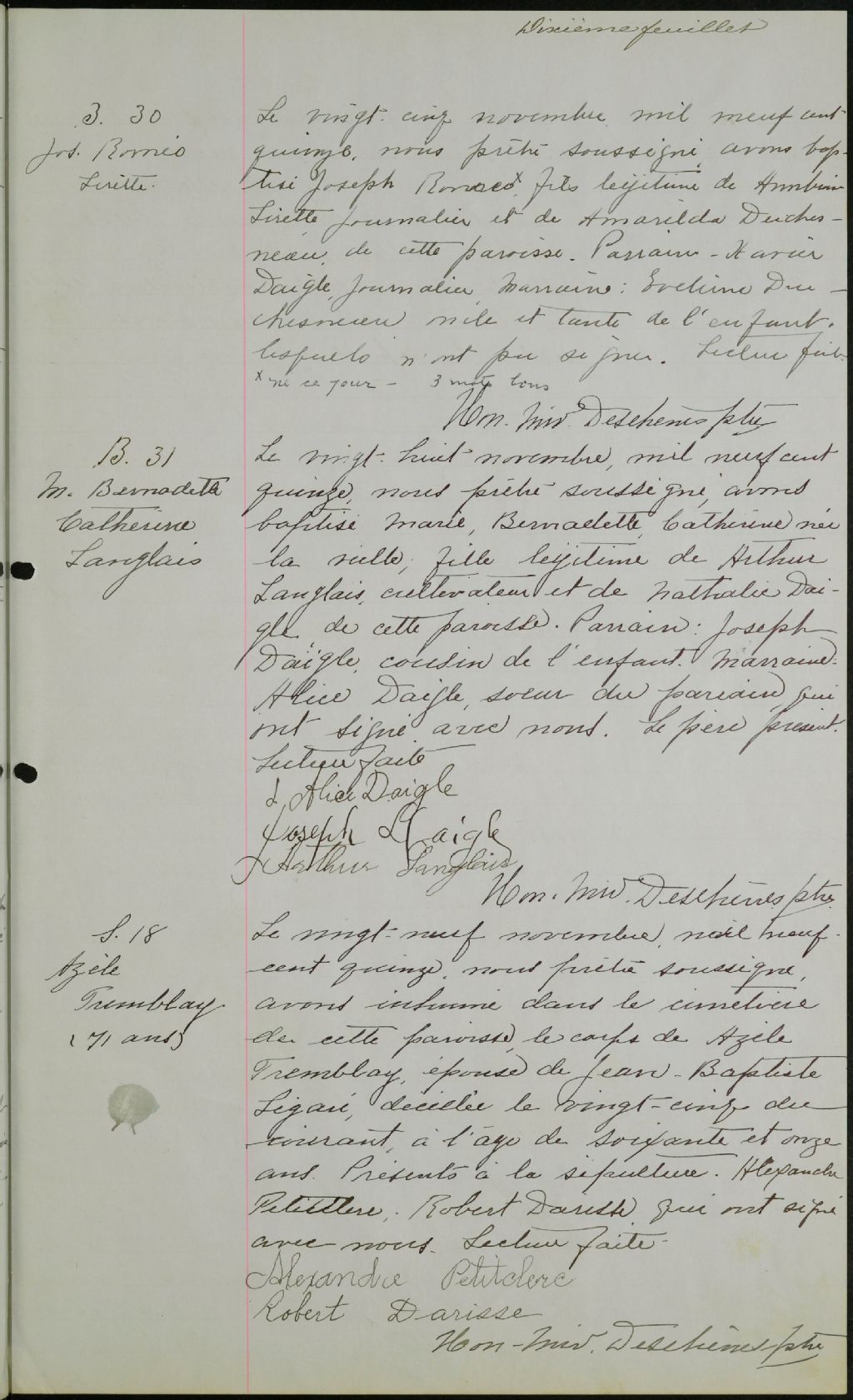 Saint-Gérard-Magella, 1907-1922, Archives nationales à Québec, Fonds Cour supérieure. District judiciaire de Québec. État civil, (03Q,CE301,S130).