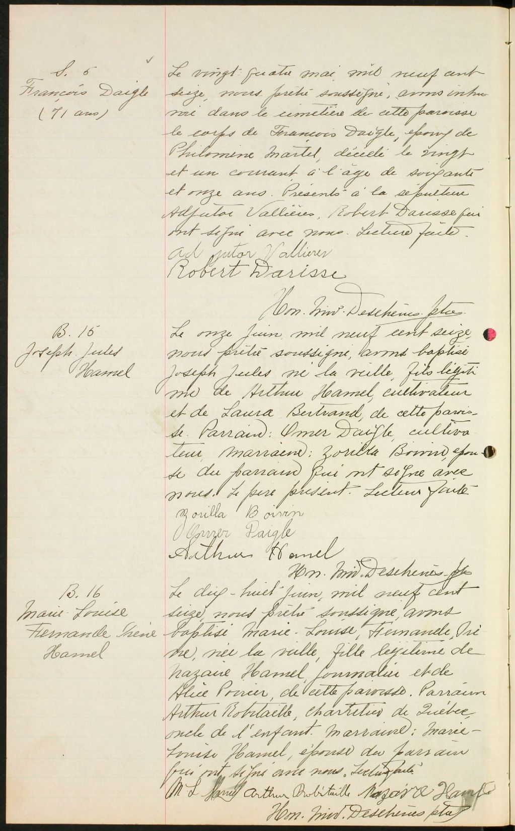 Saint-Gérard-Magella, 1907-1922, Archives nationales à Québec, Fonds Cour supérieure. District judiciaire de Québec. État civil, (03Q,CE301,S130).