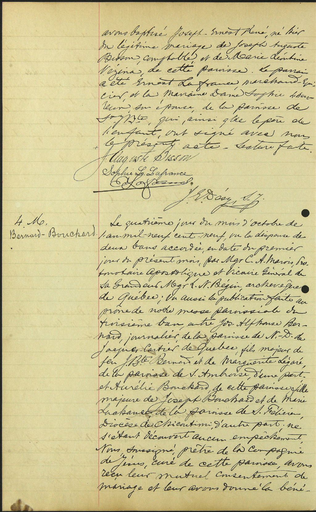 Notre-Dame-du-Chemin, 1909-1922, Archives nationales à Québec, Fonds Cour supérieure. District judiciaire de Québec. État civil, (03Q,CE301,S136).