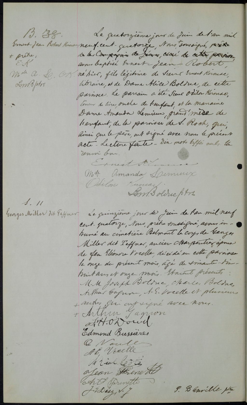 Notre-Dame-du-Chemin, 1909-1922, Archives nationales à Québec, Fonds Cour supérieure. District judiciaire de Québec. État civil, (03Q,CE301,S136).
