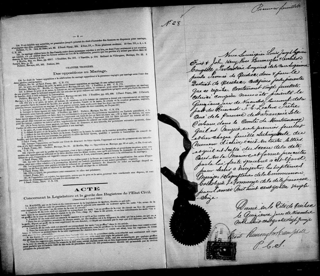 Saint-François-de-Sales, Île d'Orléans, 1682-1922, Archives nationales à Québec, Fonds Cour supérieure. District judiciaire de Québec. État civil, (03Q,CE301,S14).