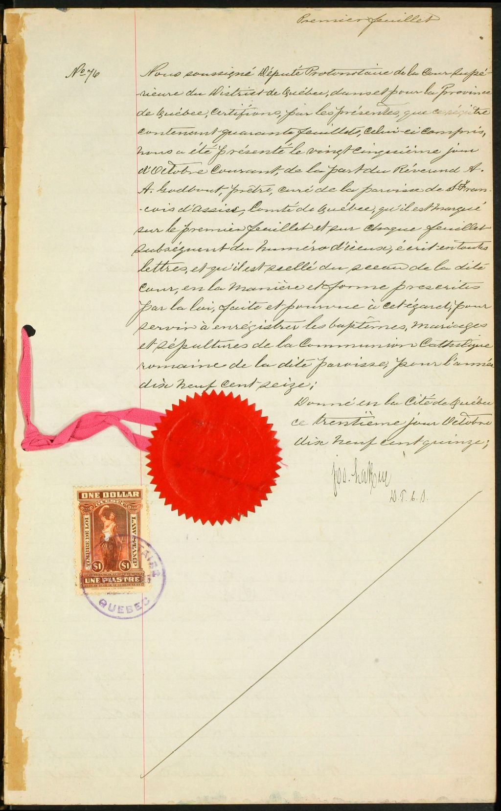 Saint-François-d'Assise, 1914-1922, Archives nationales à Québec, Fonds Cour supérieure. District judiciaire de Québec. État civil, (03Q,CE301,S144).