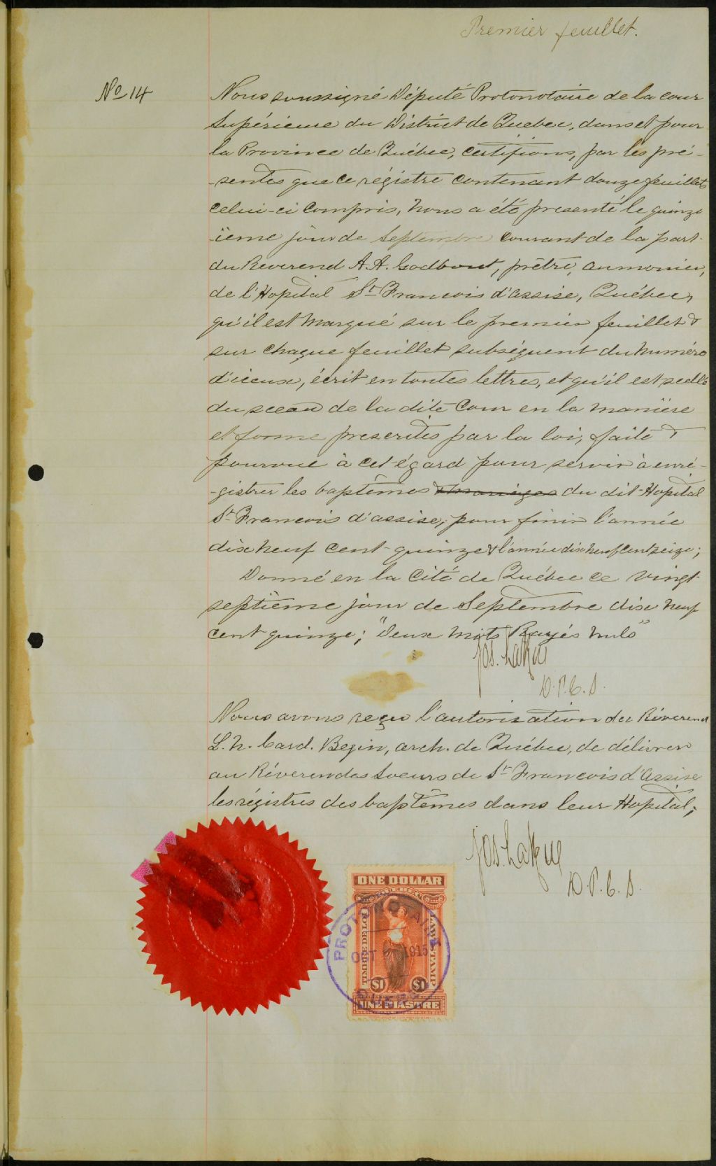 Hôpital Saint-François-D'Assise, 1915-1922, Archives nationales à Québec, Fonds Cour supérieure. District judiciaire de Québec. État civil, (03Q,CE301,S148).