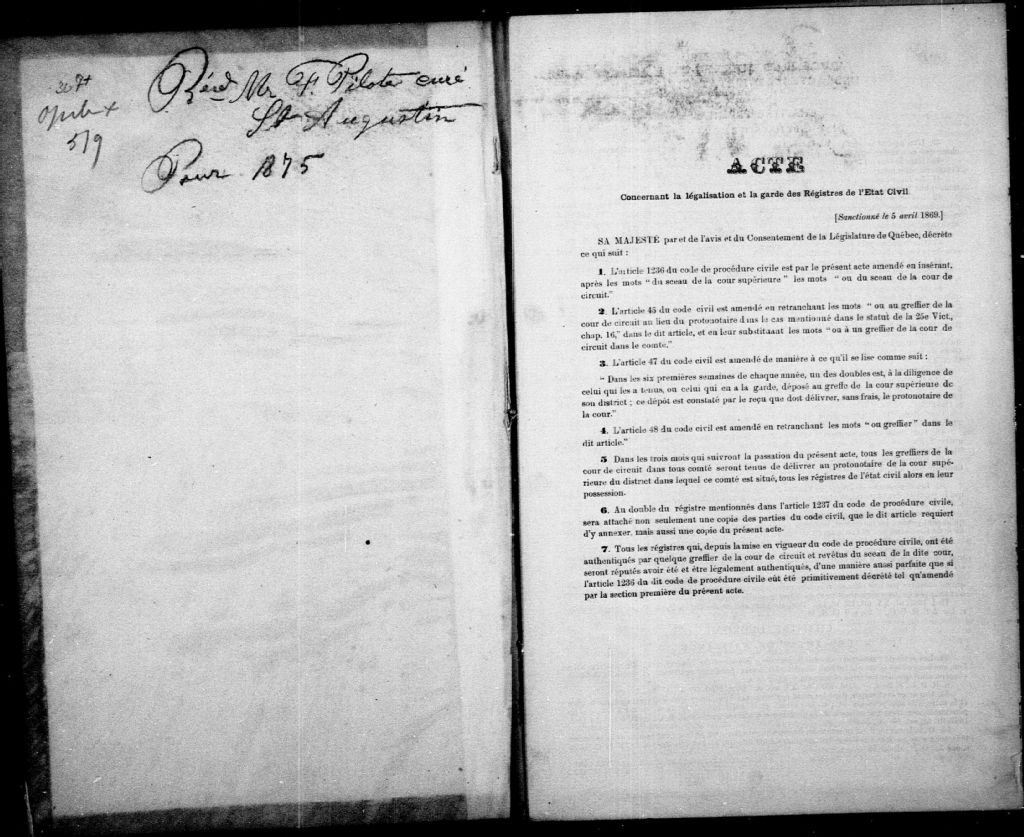 Saint-Augustin-de-Desmaures, 1694-1922, Archives nationales à Québec, Fonds Cour supérieure. District judiciaire de Québec. État civil, (03Q,CE301,S17).