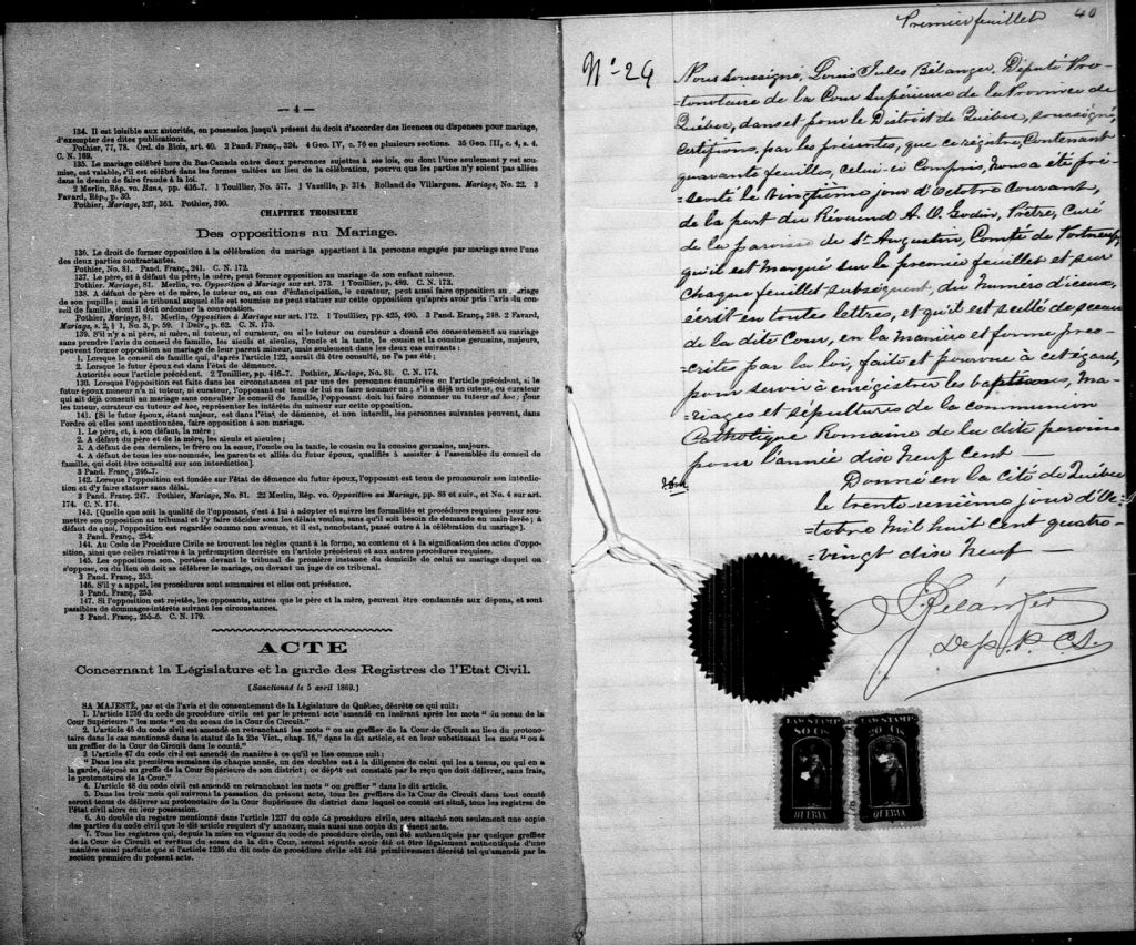 Saint-Augustin-de-Desmaures, 1694-1922, Archives nationales à Québec, Fonds Cour supérieure. District judiciaire de Québec. État civil, (03Q,CE301,S17).