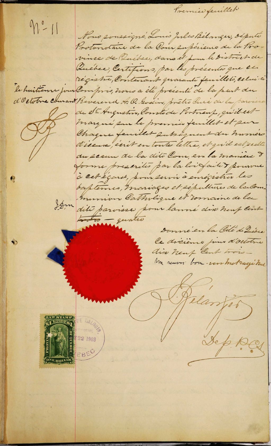 Saint-Augustin-de-Desmaures, 1694-1922, Archives nationales à Québec, Fonds Cour supérieure. District judiciaire de Québec. État civil, (03Q,CE301,S17).