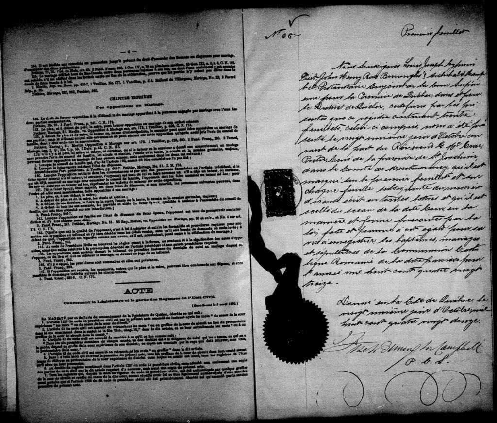 Saint-Joachim, 1687-1922, Archives nationales à Québec, Fonds Cour supérieure. District judiciaire de Québec. État civil, (03Q,CE301,S18).