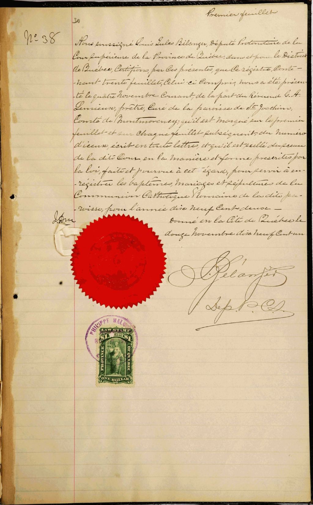 Saint-Joachim, 1687-1922, Archives nationales à Québec, Fonds Cour supérieure. District judiciaire de Québec. État civil, (03Q,CE301,S18).