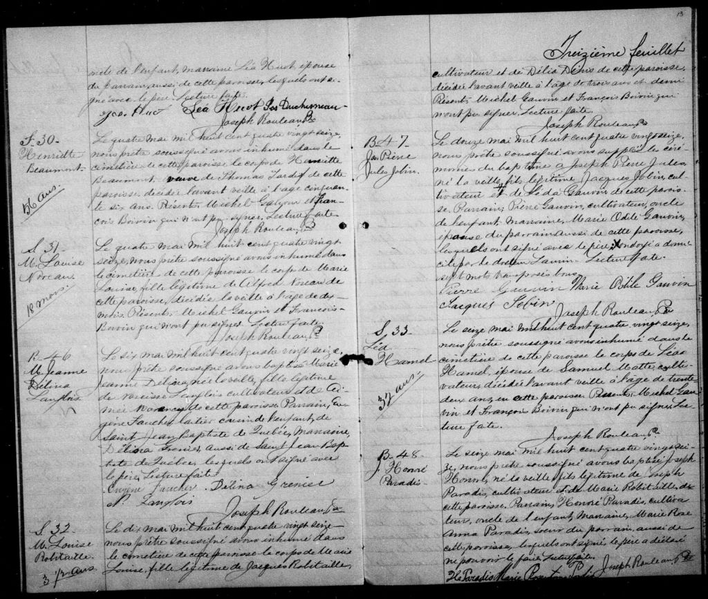 L'Ancienne-Lorette, 1697-1922, Archives nationales à Québec, Fonds Cour supérieure. District judiciaire de Québec. État civil, (03Q,CE301,S2).