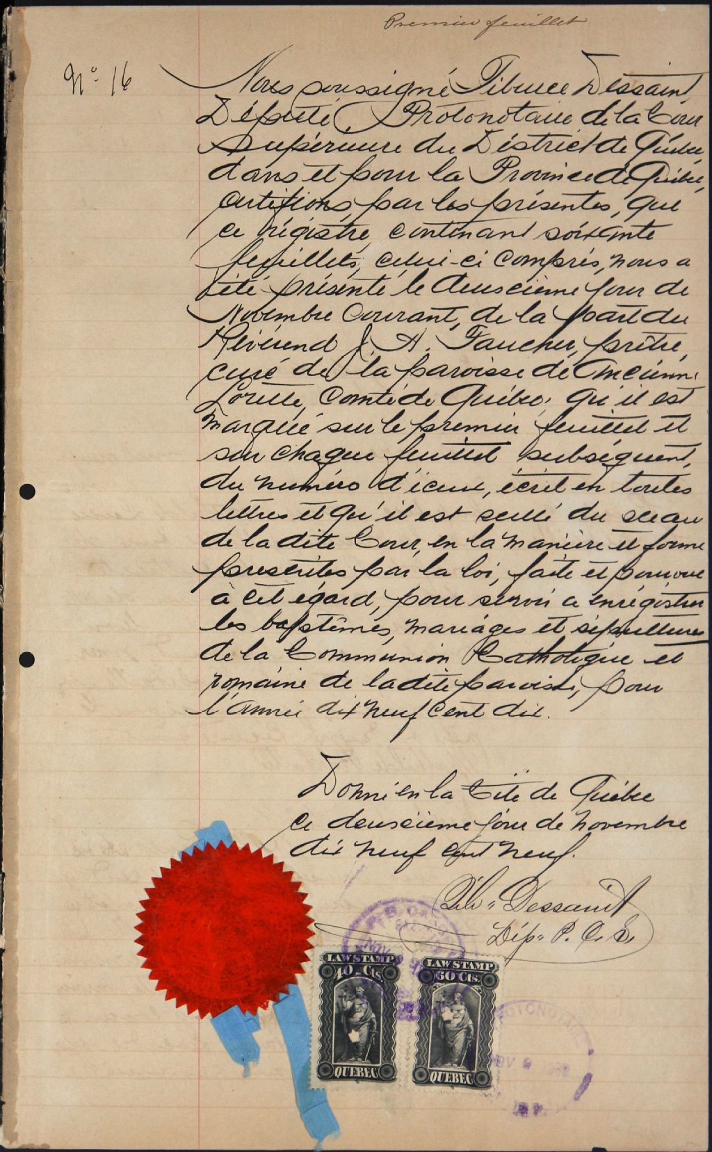 L'Ancienne-Lorette, 1697-1922, Archives nationales à Québec, Fonds Cour supérieure. District judiciaire de Québec. État civil, (03Q,CE301,S2).