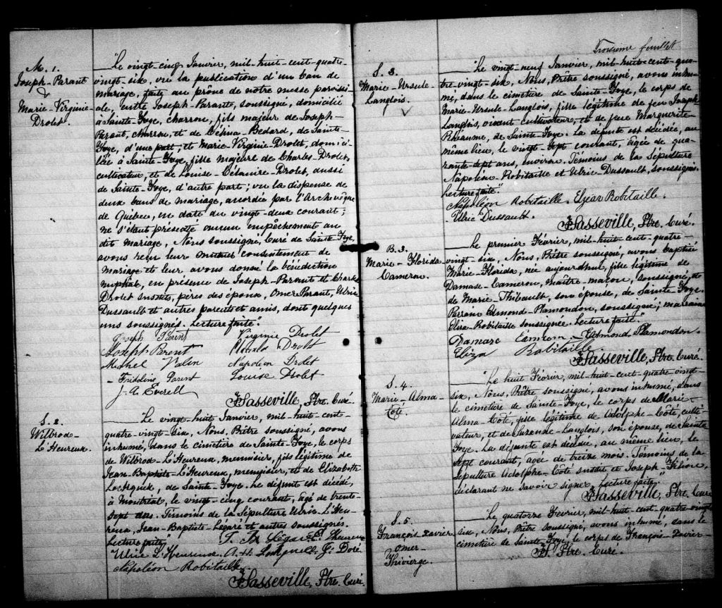 Sainte-Foy, 1679-1922, Archives nationales à Québec, Fonds Cour supérieure. District judiciaire de Québec. État civil, (03Q,CE301,S20).