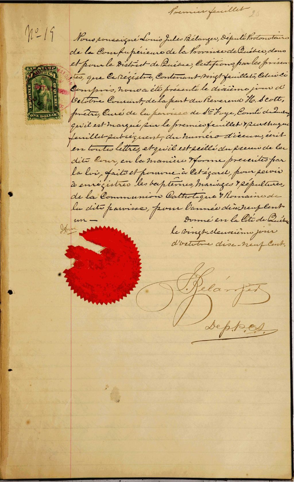 Sainte-Foy, 1679-1922, Archives nationales à Québec, Fonds Cour supérieure. District judiciaire de Québec. État civil, (03Q,CE301,S20).