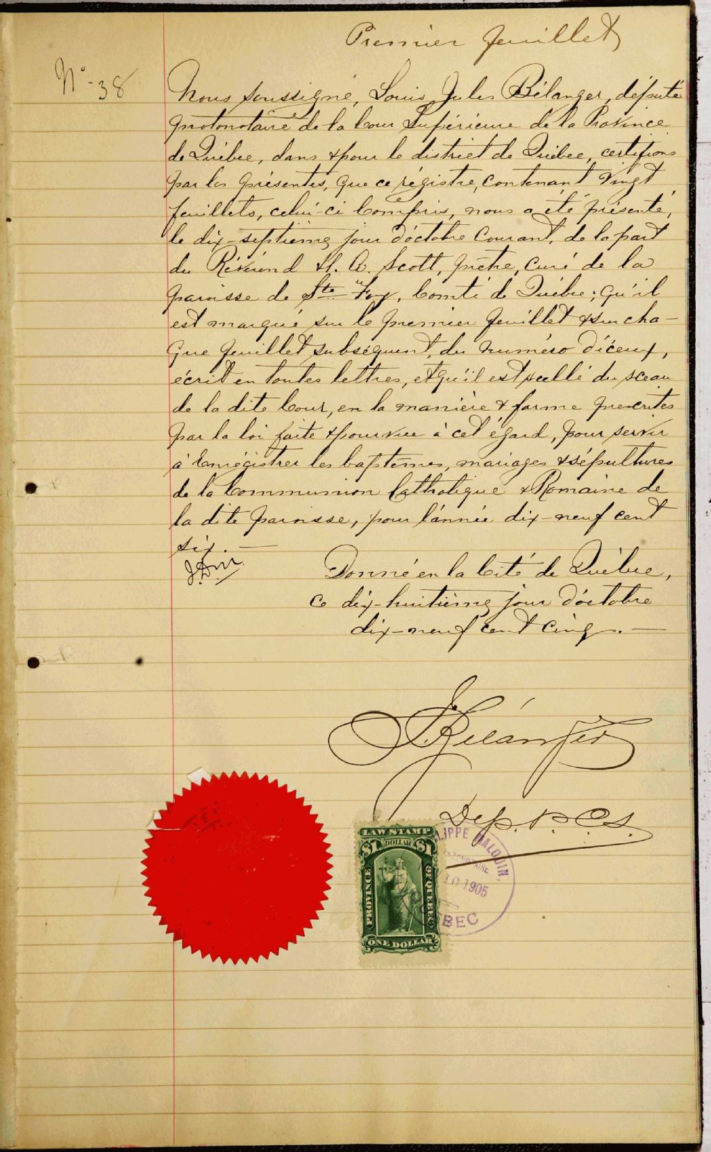 Sainte-Foy, 1679-1922, Archives nationales à Québec, Fonds Cour supérieure. District judiciaire de Québec. État civil, (03Q,CE301,S20).