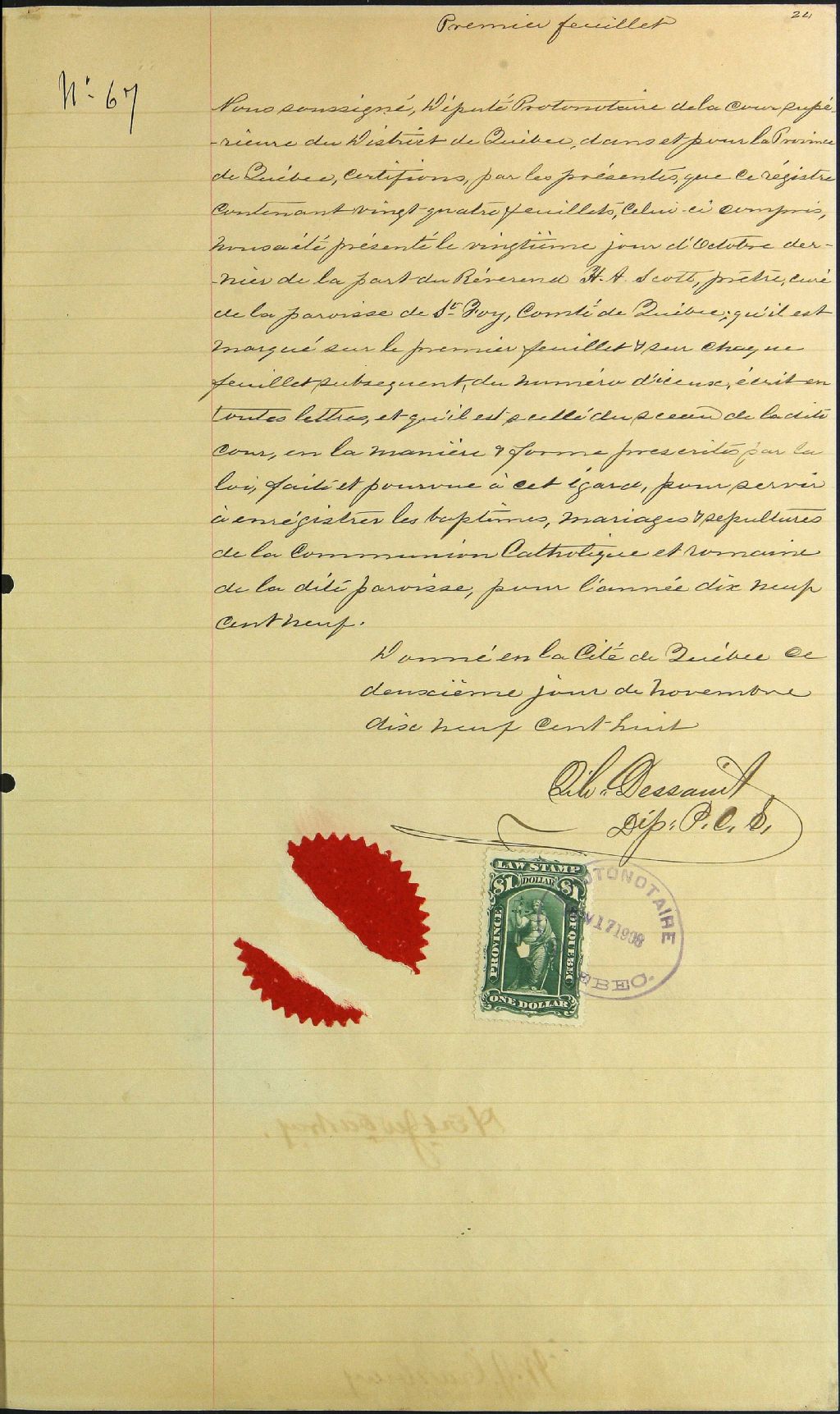 Sainte-Foy, 1679-1922, Archives nationales à Québec, Fonds Cour supérieure. District judiciaire de Québec. État civil, (03Q,CE301,S20).
