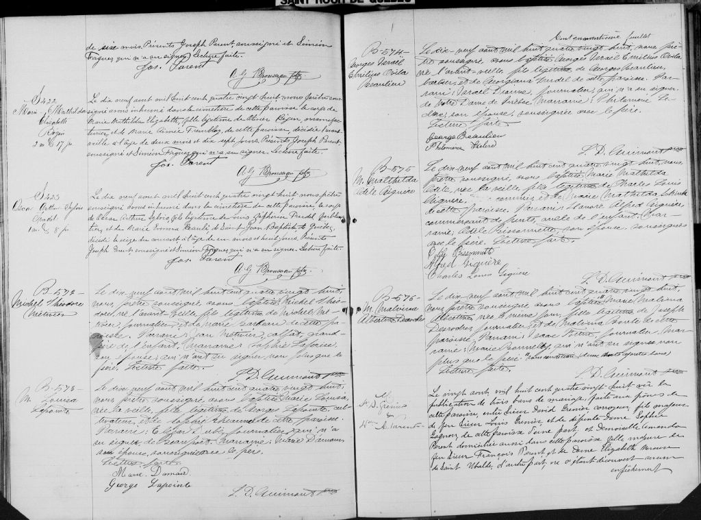 Saint-Roch-de-Québec, 1829-1922, Archives nationales à Québec, Fonds Cour supérieure. District judiciaire de Québec. État civil, (03Q,CE301,S22).