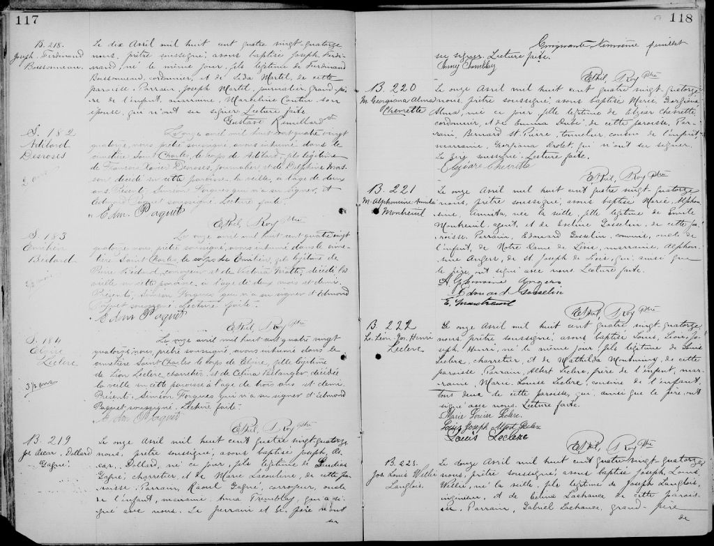 Saint-Roch-de-Québec, 1829-1922, Archives nationales à Québec, Fonds Cour supérieure. District judiciaire de Québec. État civil, (03Q,CE301,S22).