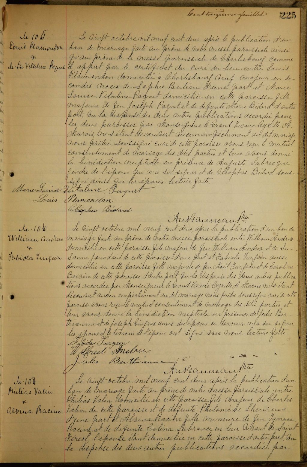 Saint-Roch-de-Québec, 1829-1922, Archives nationales à Québec, Fonds Cour supérieure. District judiciaire de Québec. État civil, (03Q,CE301,S22).