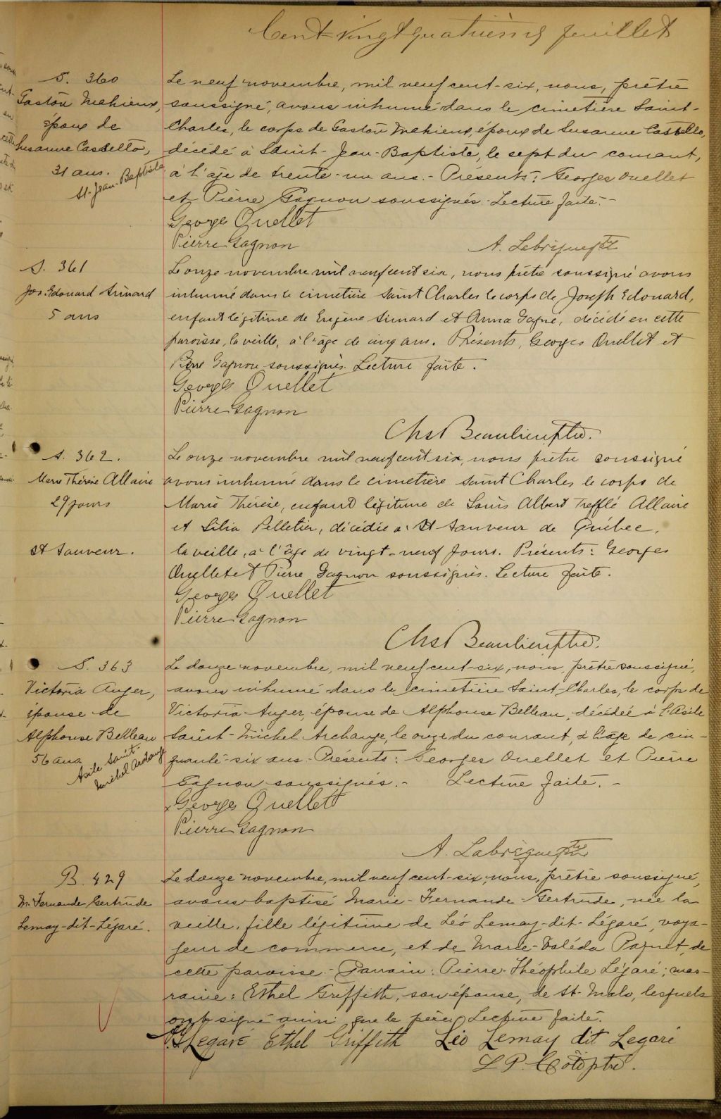 Saint-Roch-de-Québec, 1829-1922, Archives nationales à Québec, Fonds Cour supérieure. District judiciaire de Québec. État civil, (03Q,CE301,S22).