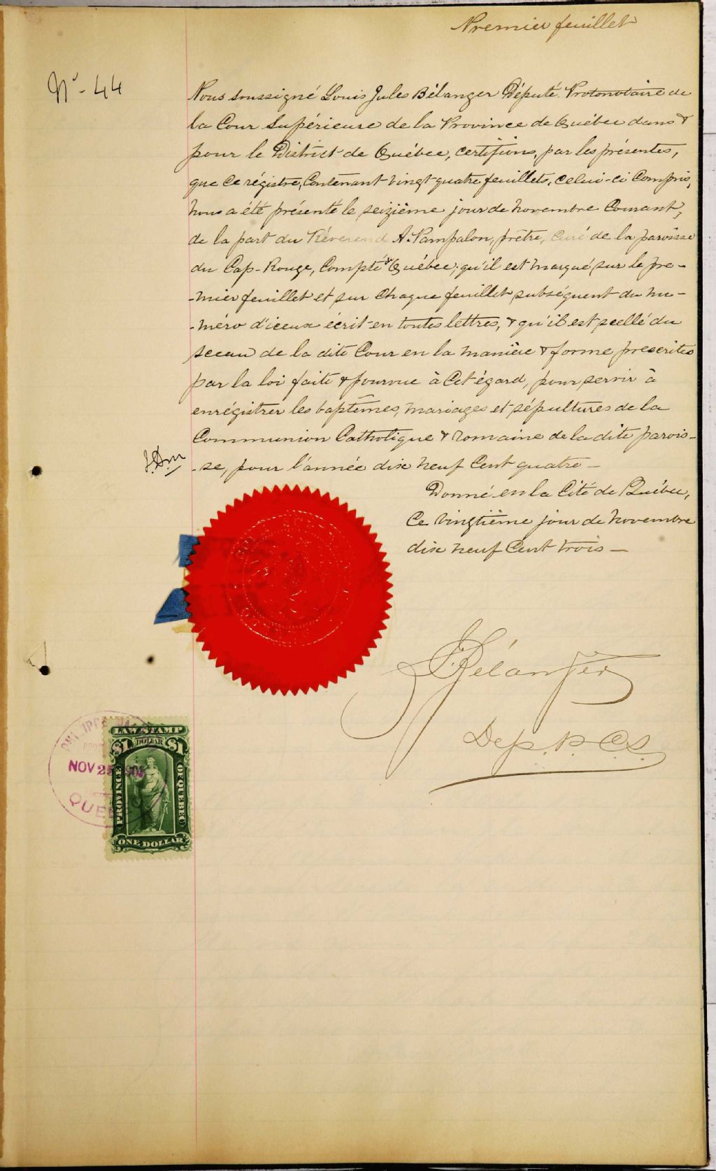 Saint-Félix-de-Cap-Rouge, 1862-1922, Archives nationales à Québec, Fonds Cour supérieure. District judiciaire de Québec. État civil, (03Q,CE301,S23).