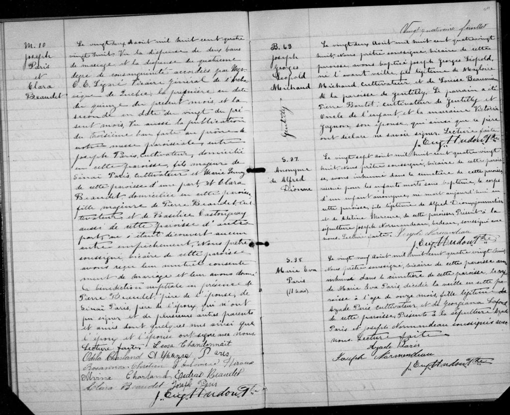 Saint-Jean-Baptiste-de-Deschaillons, 1744-1922, Archives nationales à Québec, Fonds Cour supérieure. District judiciaire de Québec. État civil, (03Q,CE301,S24).