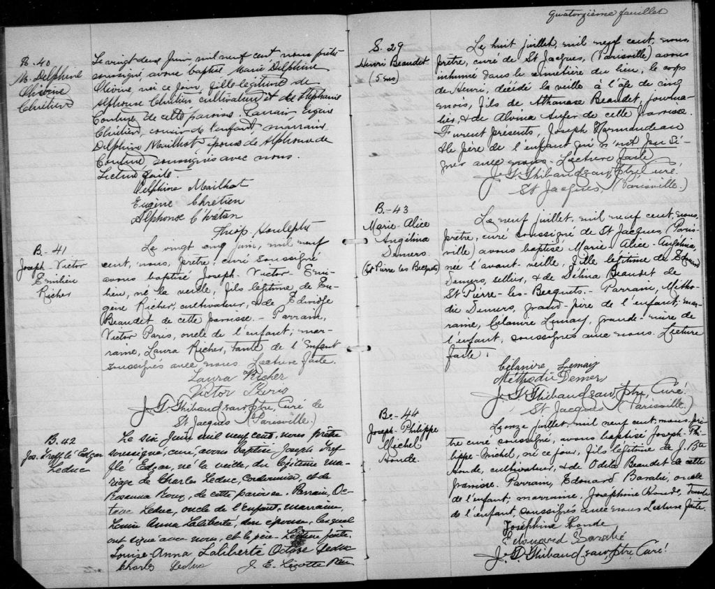 Saint-Jean-Baptiste-de-Deschaillons, 1744-1922, Archives nationales à Québec, Fonds Cour supérieure. District judiciaire de Québec. État civil, (03Q,CE301,S24).