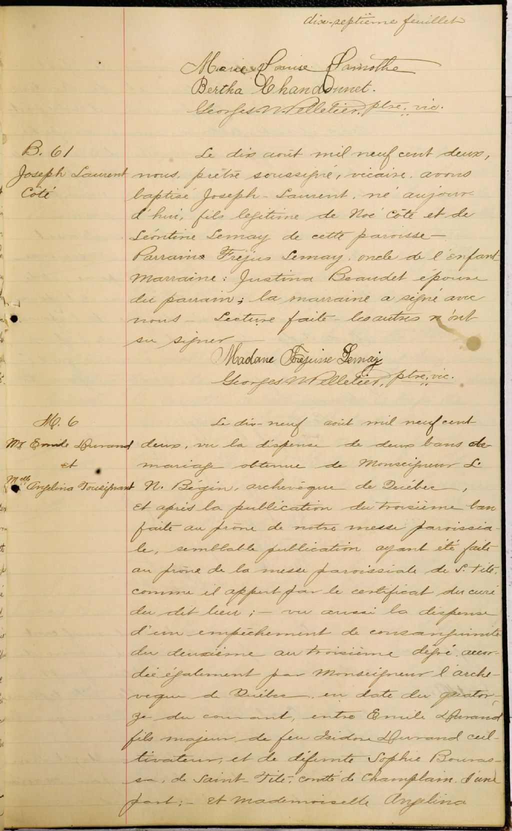 Saint-Jean-Baptiste-de-Deschaillons, 1744-1922, Archives nationales à Québec, Fonds Cour supérieure. District judiciaire de Québec. État civil, (03Q,CE301,S24).