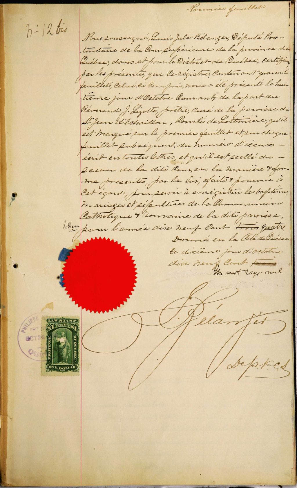 Saint-Jean-Baptiste-de-Deschaillons, 1744-1922, Archives nationales à Québec, Fonds Cour supérieure. District judiciaire de Québec. État civil, (03Q,CE301,S24).