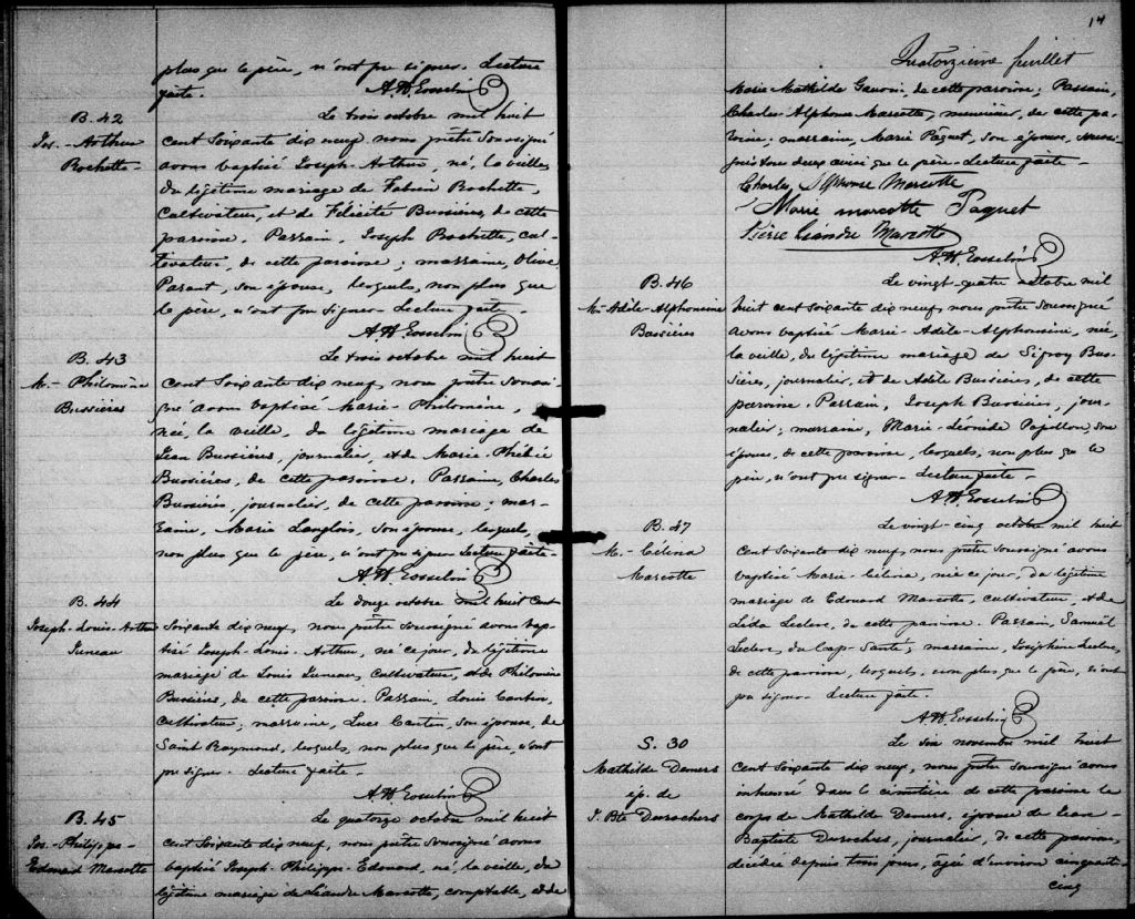 Sainte-Jeanne-de-Neuville, 1869-1922, Archives nationales à Québec, Fonds Cour supérieure. District judiciaire de Québec. État civil, (03Q,CE301,S30).