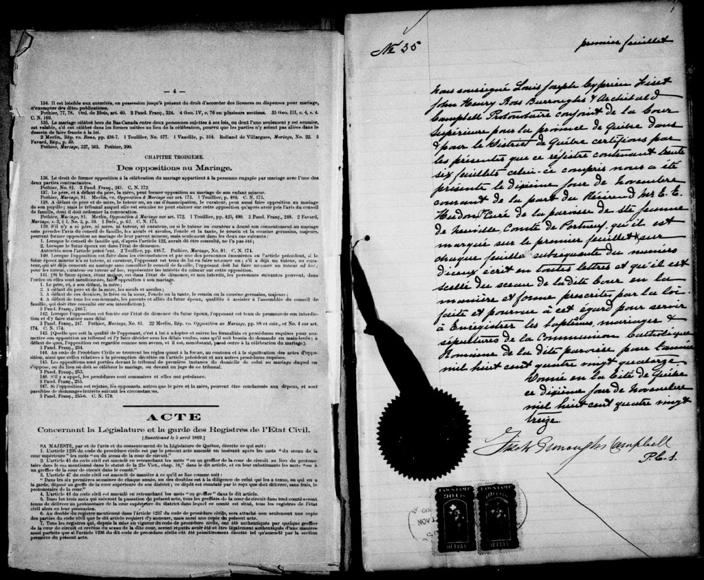 Sainte-Jeanne-de-Neuville, 1869-1922, Archives nationales à Québec, Fonds Cour supérieure. District judiciaire de Québec. État civil, (03Q,CE301,S30).