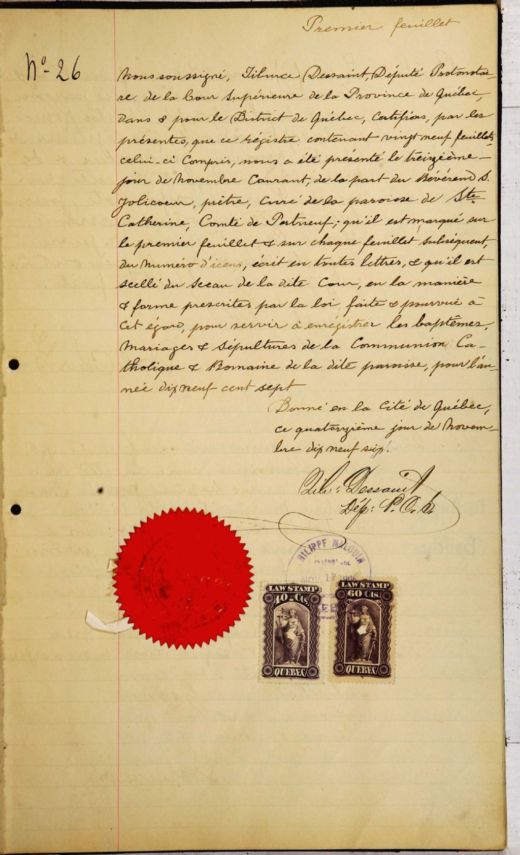 Sainte-Catherine, 1832-1922, Archives nationales à Québec, Fonds Cour supérieure. District judiciaire de Québec. État civil, (03Q,CE301,S39).