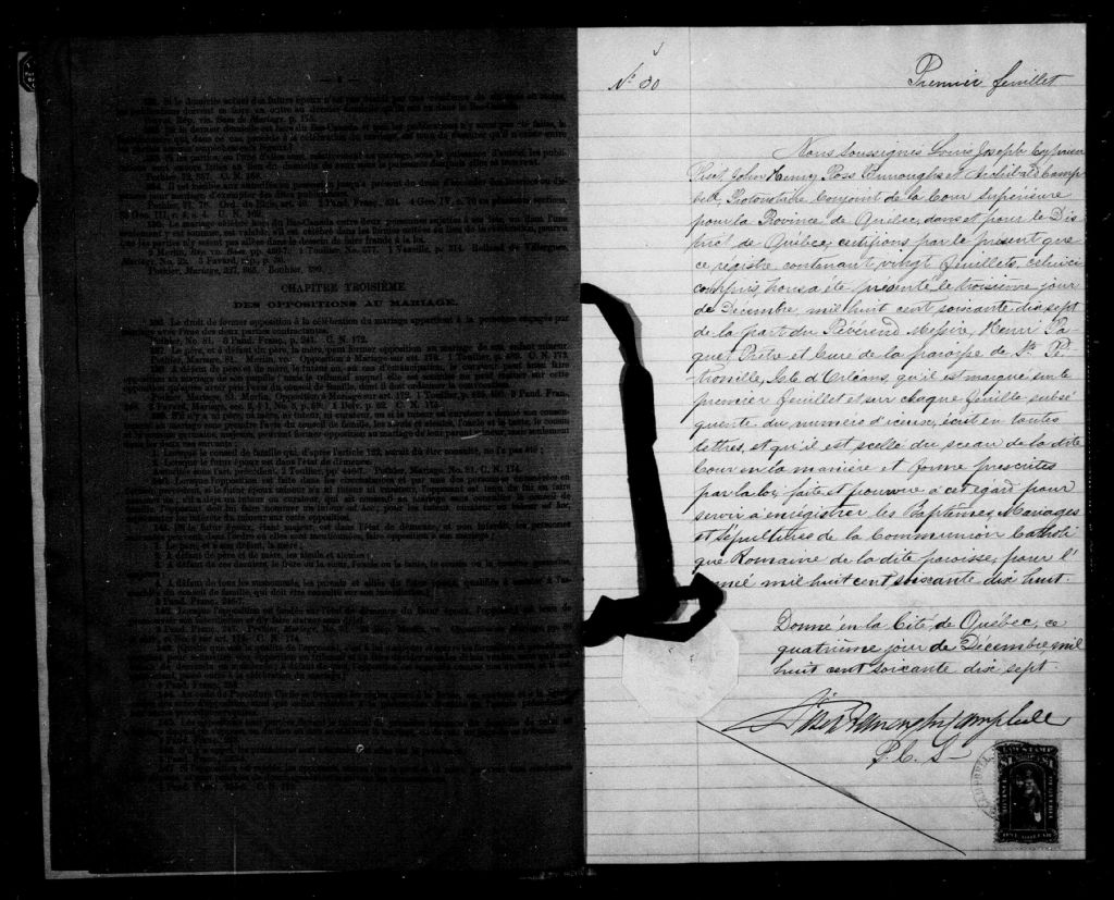 Sainte-Pétronille, Île d'Orléans, 1872-1922, Archives nationales à Québec, Fonds Cour supérieure. District judiciaire de Québec. État civil, (03Q,CE301,S52).