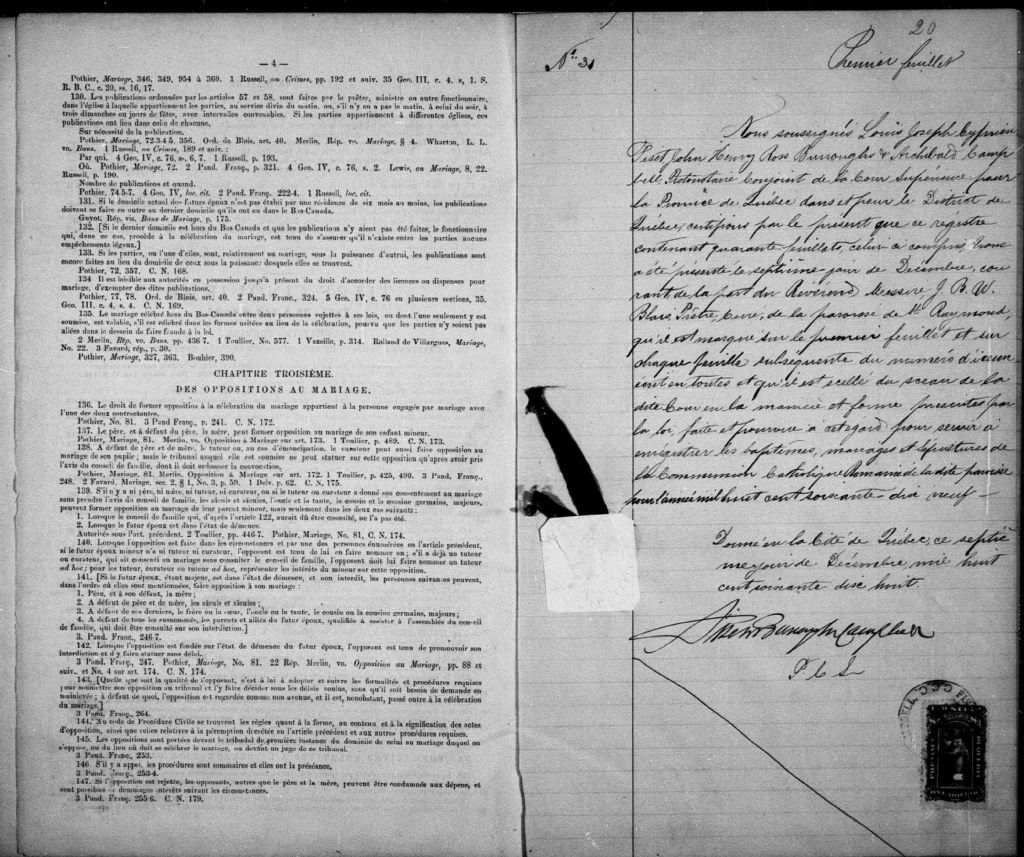 Saint-Raymond-Nonnat, 1844-1922, Archives nationales à Québec, Fonds Cour supérieure. District judiciaire de Québec. État civil, (03Q,CE301,S53).