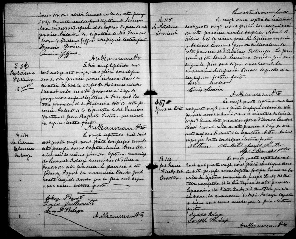 Saint-Romuald-d'Etchemin, 1854-1922, Archives nationales à Québec, Fonds Cour supérieure. District judiciaire de Québec. État civil, (03Q,CE301,S54).