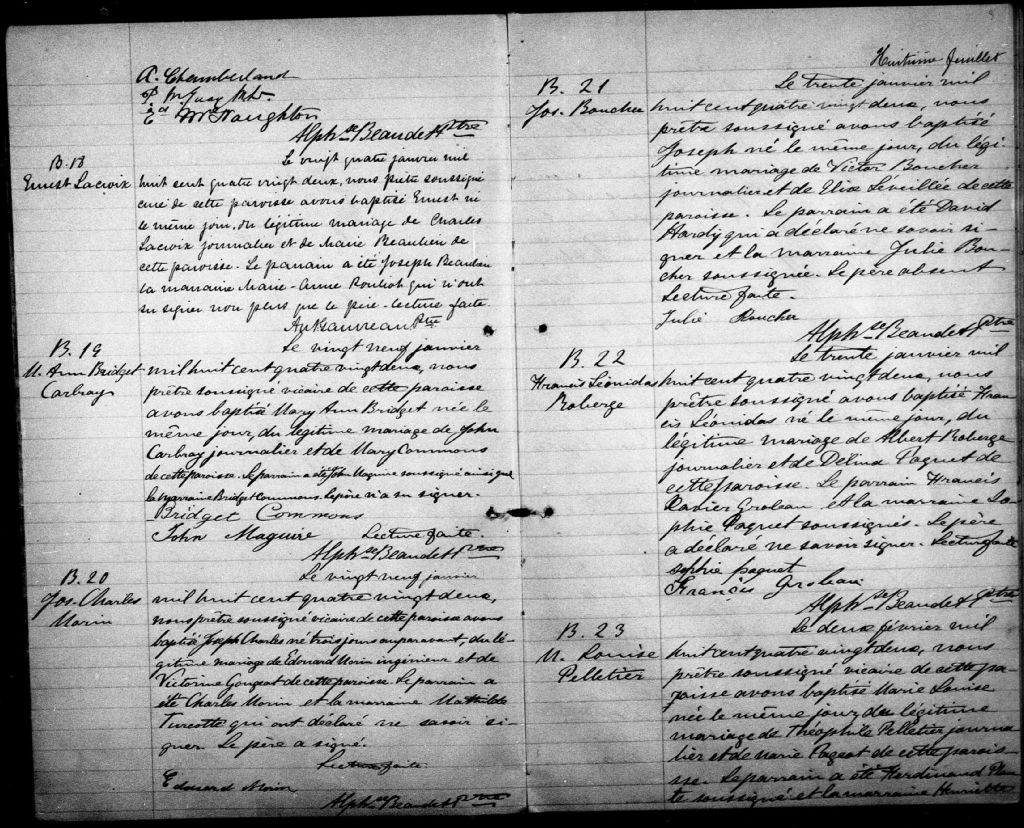 Saint-Romuald-d'Etchemin, 1854-1922, Archives nationales à Québec, Fonds Cour supérieure. District judiciaire de Québec. État civil, (03Q,CE301,S54).